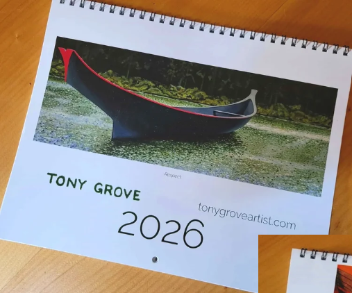 A 12 month 2026 calendar by local artist Tony Grove. 10 x 8 (opens to 10 x 16)